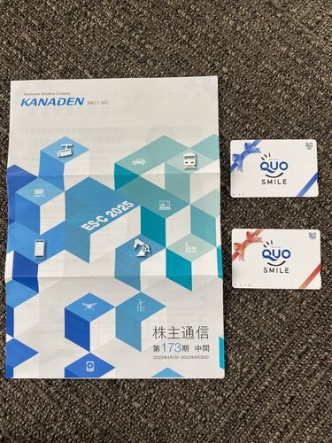 今年の優待品もそろそろ終わりに近づいています が・・・忘れている頃に突然届くと嬉しさ2倍ですね 【8081 カナデン】 夫名義 QUOカード 500円分 まるまりん名義 QUOカード 1,000円分 先にまるまりんが購入したのですがいつも通り 購入すれば下がる⤵ じーー…